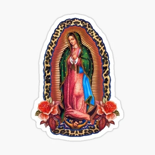 Virgen de Guadalupe Virgin Mary Virgencita cheetah Floral Sticker waterproof